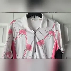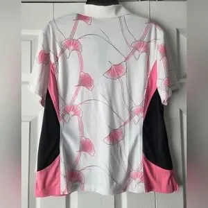 NWOT Monterey Club Polo Golf Pink and Black Floral Top Size XL