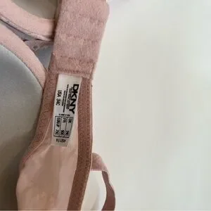 Chic lace bras by DKNY. Soft pink, classic black, and gentle lavender. Perfect for everyday elegance.