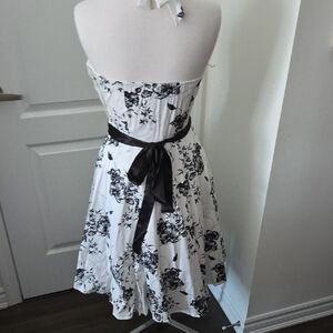 Strapless Black and White Floral Dress