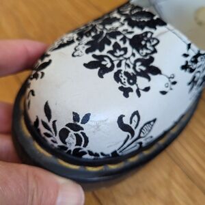 Black and White floral pattern , textured flocked floral pattern , good preowned condition, some wear to the toe area, no modeling or trades, US 6/EU 37, no modeling or trades