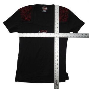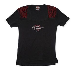 Harley Davidson Vintage Y2K Square Neck Lace Detail Top Black / Red Women's S
