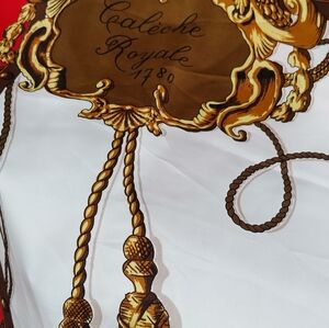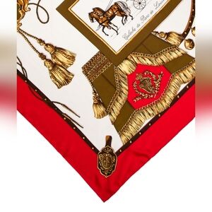 Luxurious silk scarf with intricate equestrian motifs.