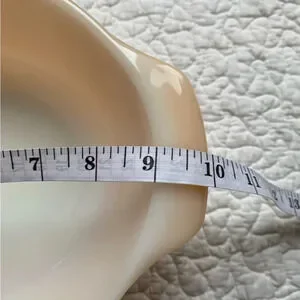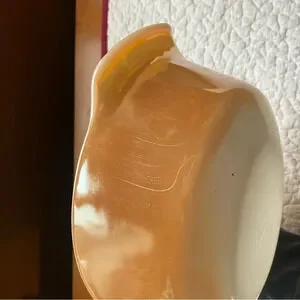Please see photos for scratching on peach color. This is normal wear and storage based. There are no chip or cracks in the glass.