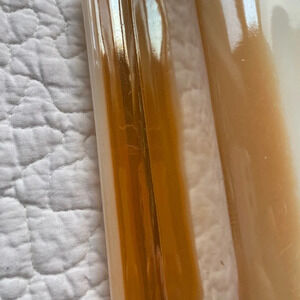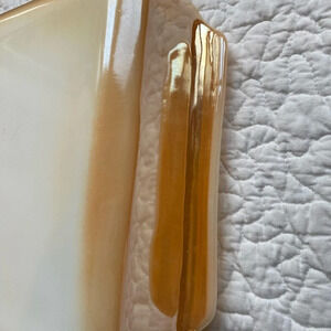 Please see photos for scratching on peach color. This is normal wear and storage based. There are no chip or cracks in the glass.