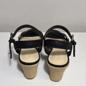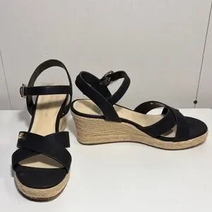 Cute black straps with a tan woven wedge. Ideal for most occasion. Can be dressed up or down. Only worn a few times.