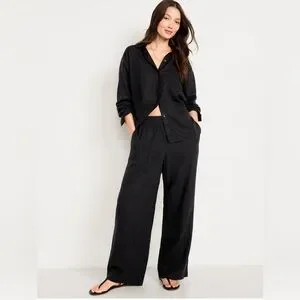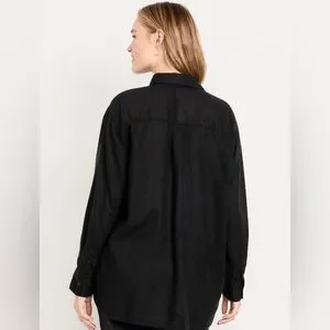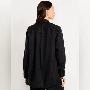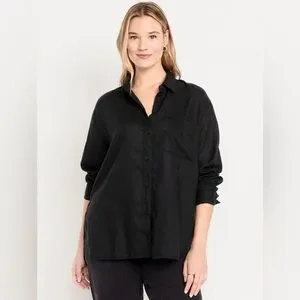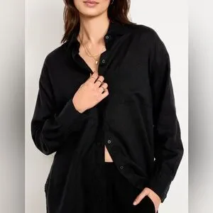 🆕 Old Navy Women's Linen-Blend Loose Button-Down Shirt Black Jack L 12-14