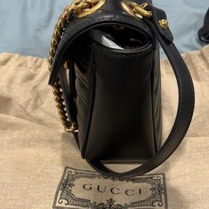Gucci Quilted Black Shoulder Bag with Gold Chain