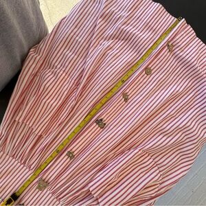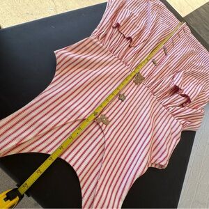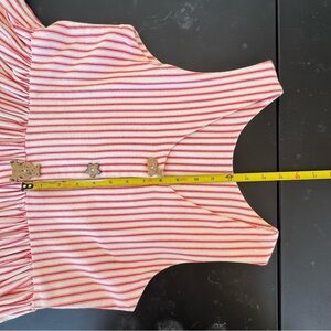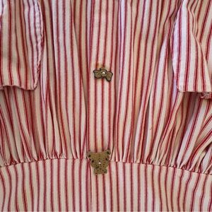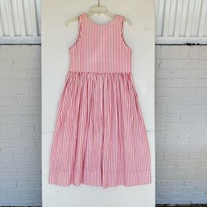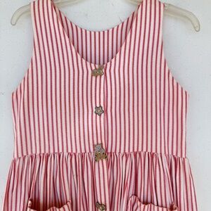 ✨White & Red Striped Double Pocket Sleeveless Handmade Dress with Handmade Buttons (Buttons not functional, decorative only)