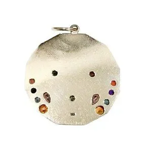 Rare Vintage Brushed 14K Gold Gemstone Windmill Pendant for Necklace