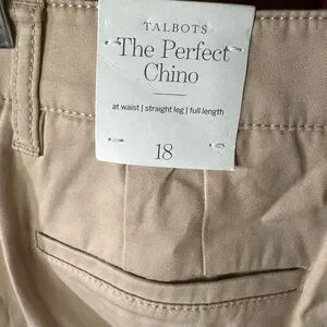 Talbots women’s size 18 Tan The Perfect Chino. Classic cotton straight leg NWT