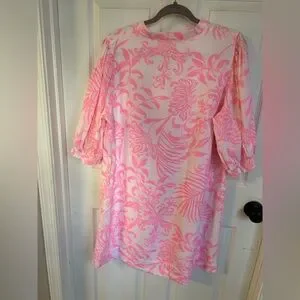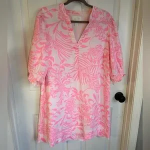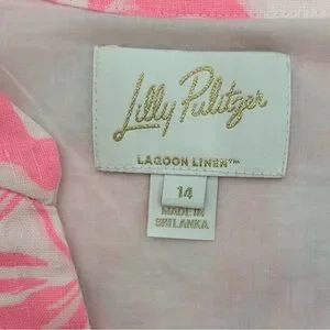 Lilly Pulitzer Mialeigh Palm Print Shift Dress Women’s Size 14 Pink and White