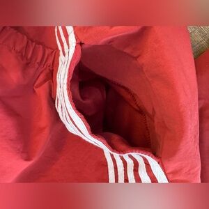 Cali1850 Muted Red Nylon Track Pants with White Stripe Ankle Ties Y2K NWOT