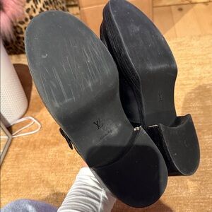 In great condition - worn once. Purchased from rebag, when purchased they were never worn. There are slight scratches towards the back of the shoe, but I’m sure if you go to a cobbler they can be buffed out. Additionally, on the heel there is some scuffs see pictures, please.