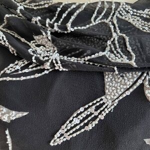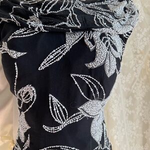 Black and White Beaded Floral 100% Silk Shell Top