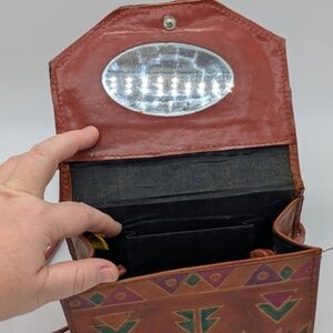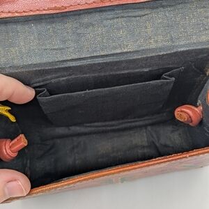 Vintage Orange Red Safari Elephant Leather Crossbody Bag Purse. Stitching is coming loose at one corner, exterior trim is peeling, and the exterior has multiple discoloration spots (see photos)