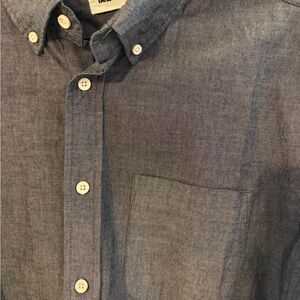 Classic chambray shirt with button-down collar. Ideal for casual outings. Features a chest pocket.