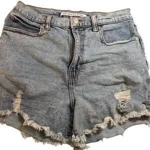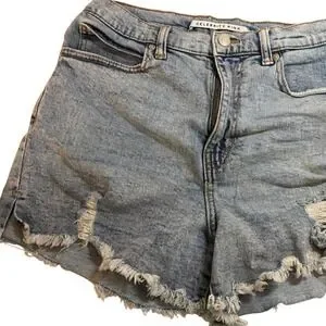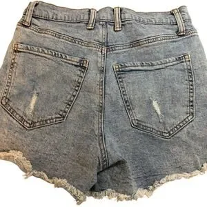 Keywords: denim shorts, distressed shorts, frayed hem shorts, womens shorts, juniors shorts, blue denim, casual shorts, Celebrity Pink, size 7, size 28, summer shorts, short shorts, Indie Boho,