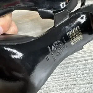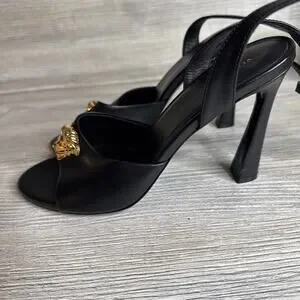 VERSACE SHOES BLACK LEATHER w MEDUSA HIGH HEEL SANDALS sz IT 39 US 8