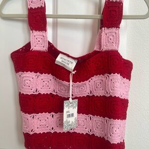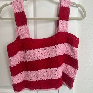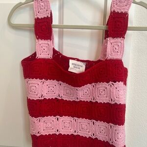 Hyacinth House Red and Pink Crochet Crop Top