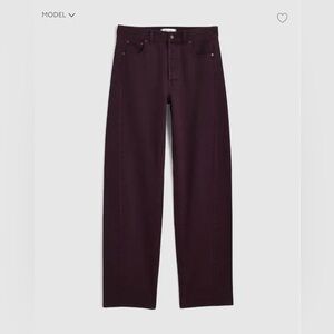 Stylish deep purple jeans with a wide leg design. Perfect for a modern look.
