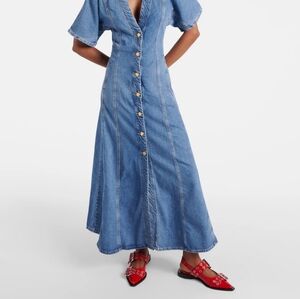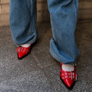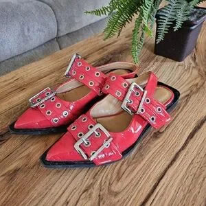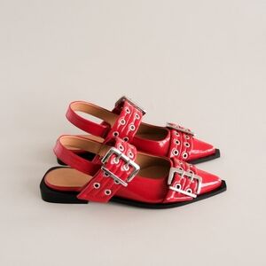 Ganni Chunky Buckle Ballerina Racing Red Slingback Flats / Sandals