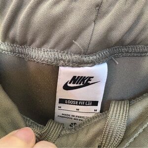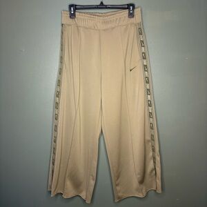 Nike loose fit wide leg cropped pants. Features green Nike logo on the side. Elastic waistband. These were custom hemmed, please see measurements for length.
