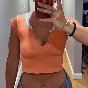 Urban Outfitters Out From Under Go For Gold Seamless Ribbed Cap Sleeve Crop Top