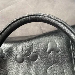 Pleather (simulated leather) official Disney licensed purse featuring both Mickey Mouse and Minnie Mouse embossed pattern design