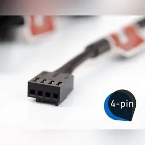 4-pin PWM version for automatic speed control via 4-pin PWM fan headers, broad 450-2200rpm speed range (1750rpm max. with supplied Low-Noise Adaptor)