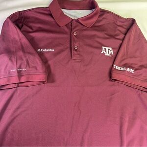 Texas A&M Men's L Columbia PFG Maroon Polo Shirt. Logo on both sleeves and back. Mesh lining inside the upper back with breathable openings on the back. See pics. Stylish maroon polo shirt featuring Texas A&M logo.