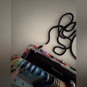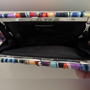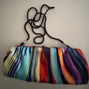 Kate Landry Satin Multicolor Striped Clutch with Rope Strap Vibrant Colors SKU8