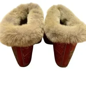 L’Artiste Chic Red Floral Fur-Lined Mules (NWOT)