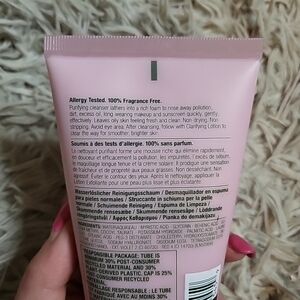 Skin Type Dry Combination, Combination Oily, Oily Cream-mousse foam cleanser gently and effectively rinses away makeup. Allergy tested. 100% fragrance free. Absolute classic. Brand new, no box; NWOB. Clinique’s All About Clean™ Rinse-Off Foaming Cleanser gently and effectively rinses away pollution, dirt, excess oil, long-wearing makeup, and sunscreen. Purifying formula lathers into a rich foam. Non-drying and non-stripping.Leaves skin feeling fresh and clean. More responsible packaging. Tube is minimum 30% post-consumer recycled material, 30% plant-derived plastic. Cap is 25% post-consumer recycled material. What does post-consumer recycled (PCR) material mean? It's a material (such as a plastic water bottle) that's already been used and would otherwise have been thrown away. This reduces the creation of new plastic waste. What does plant-derived plastic mean? It's made from an agricultural byproduct of process. New, no box. ✨️💫