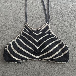 black and cream striped halter crochet bikini top from Target, brand xhileration. size large and lace up back
