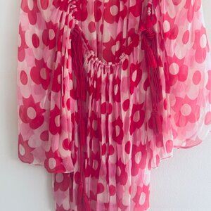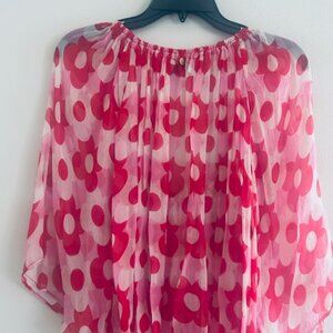 Anthropologie Antik Batik Sheer Floral Vibrant Red Poppy Print Juicy Tunic Top