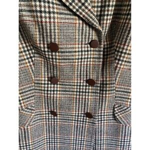 Keywords: plaid blazer, double breasted, tailored jacket, vintage style, Italian fashion, classic outerwear, workwear, smart casual, heritage print, sophisticated, business casual, fall fashion, winter style