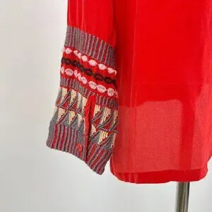 NWOT Johnny Was Biya Reverie Silk Floral Embroidered Red Shirt Blouse Size M