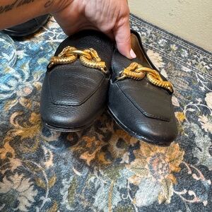 Tory Burch Black Loafers with Gold Chain Detail
