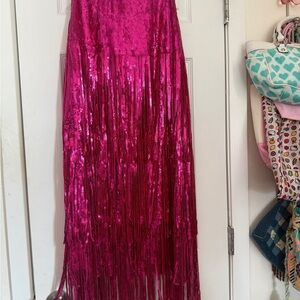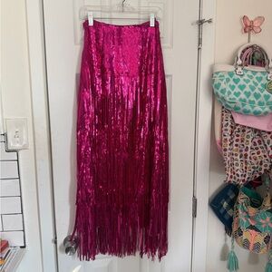 Dazzle in this fuchsia sequin fringe maxi skirt by Maeve. Features eye-catching fringe detail. Perfect for standout style and fun vibes ✨ purchased new at Anthropologie and only worn a small handful of times.