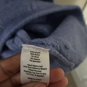 This Talbots Women's Blue Pullover Cable Knit Sweater in size Xtra Large is a classic and preppy addition to any wardrobe. Made from a blend of nylon, alpaca, and wool, this sweater features a solid blue color and a round neckline. The cable-knit style adds a touch of texture, while the long sleeves and pullover design make it perfect for casual occasions in all seasons. With its designer theme and timeless appeal, this sweater is a versatile and stylish choice for women who appreciate quality and classic style.