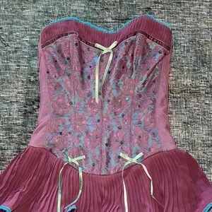 Betsey Johnson Purple & Blue Dress with Ruffle Details, Lace Overlay & Sequins