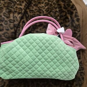 Elegant quilted design. Mint green with pink details. Perfect for a stylish touch.