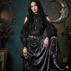 Maje Paris Metallic Eyelet Ruffle Cold-Shoulder Blouse - Sheer Dark Academia Goth Chic (Size 1/S) direct from the heart of Parisian fashion at 2 Rue de Marengo, Paris.