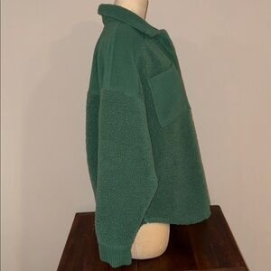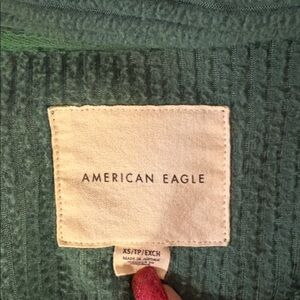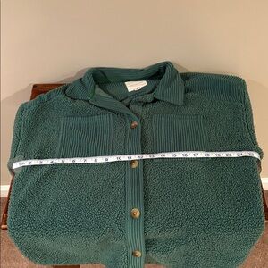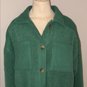 Excellent condition, American Eagle Sherpa Shacket Size XS. Color green, button front and two pockets. 100% polyester - machine wash cold. See pictures for length and armpit to armpit measurements.