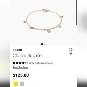 Coach Silver Charm Bracelet with Heart and Star