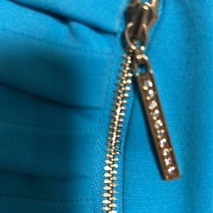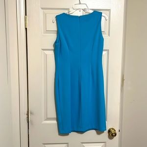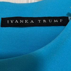 Ivanka Trump dress, aqua blue, size 10, gold tone decorative zipper with rhinestones , EUC, perfect condition, pit to pit 19 inches, length shoulder to bottom 37 inches, worn once
