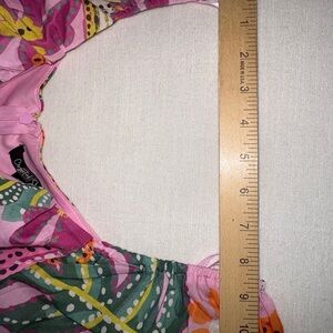 Embrace vibrant style with this tropical asymmetrical dress. Featuring bold pink, orange, and green patterns, it's perfect for making a statement. The puff sleeves add a touch of elegance.