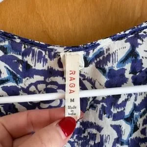 Raga Womens Blue White Floral Ikat Viscose Wrap Maxi Dress Size M 3/4 Sleeve