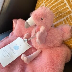 Adorable cloud island pink baby security blanket with a plush flamingo. Soft and cozy for snuggles. Satin trim new with tags NWT