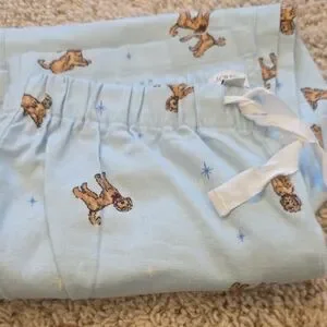 Light blue pajama pants with charming dog design. Perfect for cozy nights.